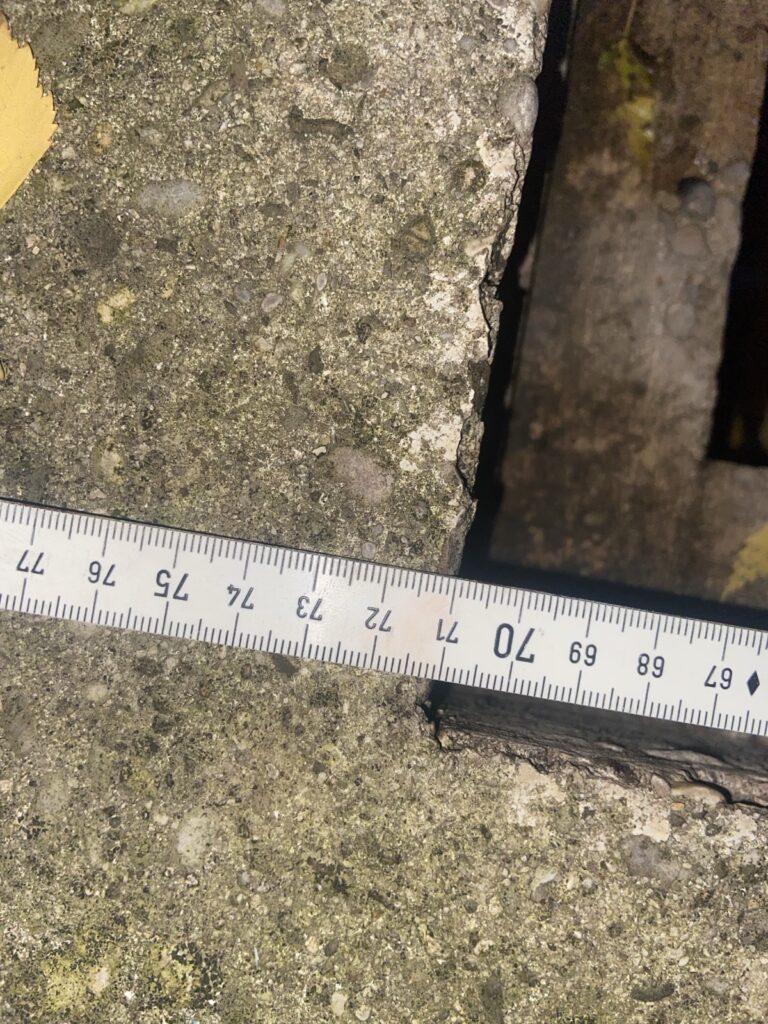 Der Mail beigefügt waren mehrere Fotos, die einen Betonklotz in den Maßen 160x100x100 cm und einem errechneten Gewicht von über 3,5 Tonnen zeigen. Er hat auf der Oberseite eine Einbuchtung, in die – typisch für einen Grundstein – Urkunden, die Tageszeitung oder sonstiges gepackt werden kann und wo sich sogar eine Kante zum Verschließen befindet. An einer Seite des Betonsteins sind die Olympischen Ringe und auf der Kopfseite die Jahreszahl 1972 zu sehen. Sie scheinen aufwändig von der Gussform des Quaders ausgespart zu sein.